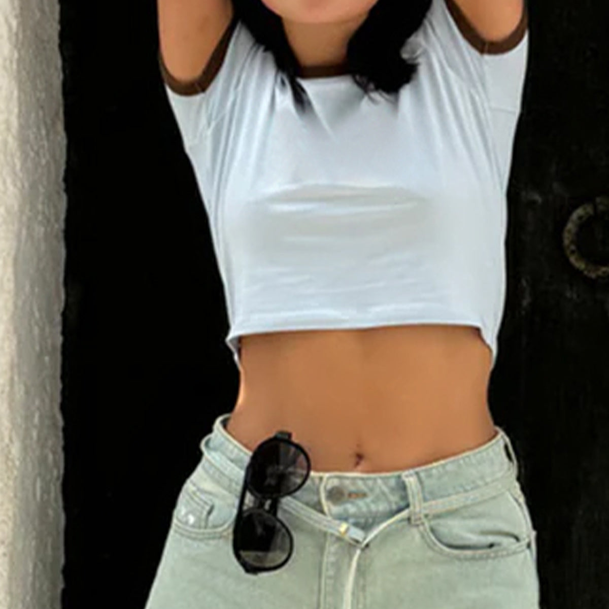 This Women's Baby Tee combines comfort and fashion in a short, snug, and form-fitting design that beautifully accentuates your curves. Crafted from high-quality pure cotton, it offers a soft, breathable feel for all-day wear. The standout feature is its contrasting collar design, adding a pop of vibrancy to the look. With its cropped cut exuding youthful energy, this tee is a versatile and stylish must-have, perfect for standalone wear or pairing with high-waisted favorites.