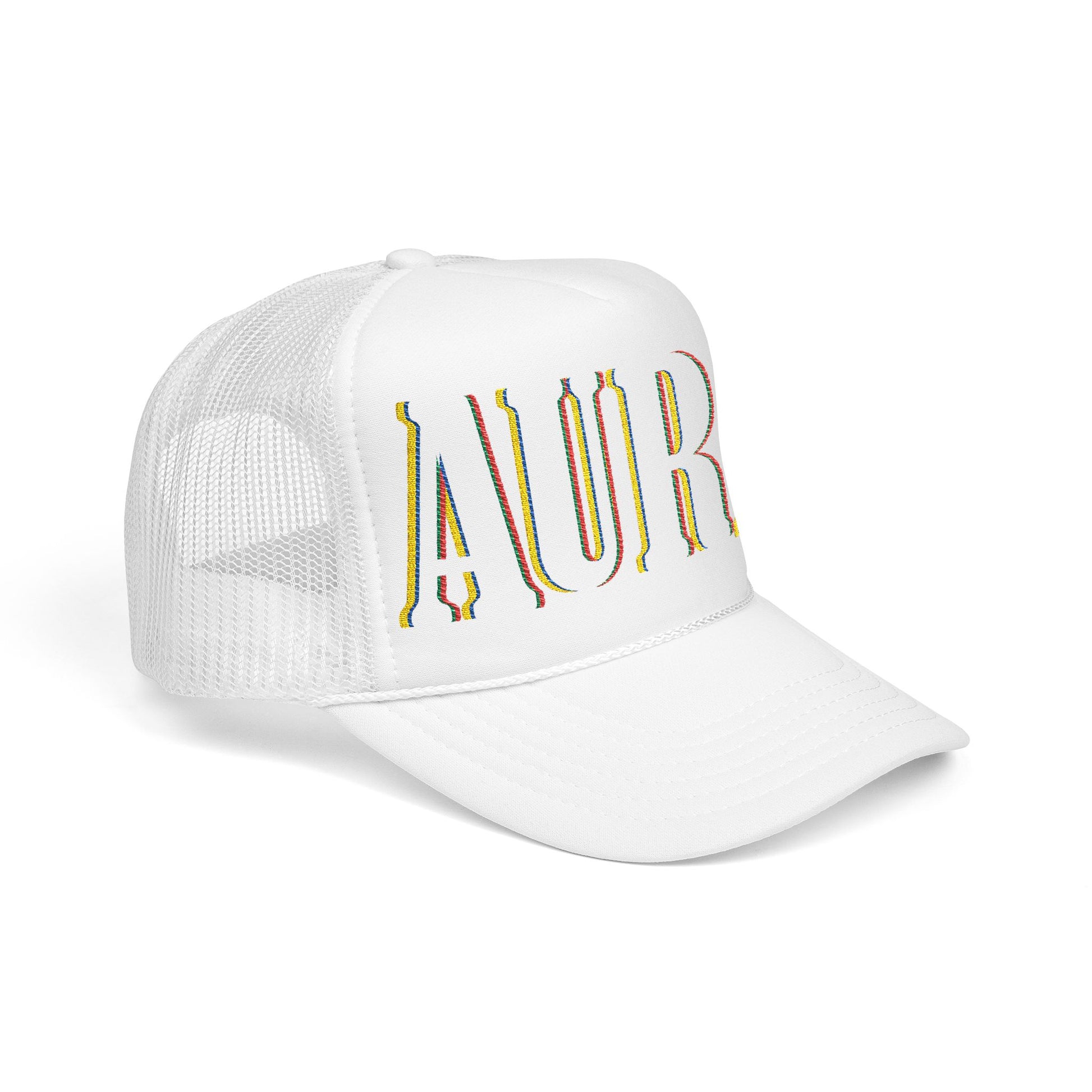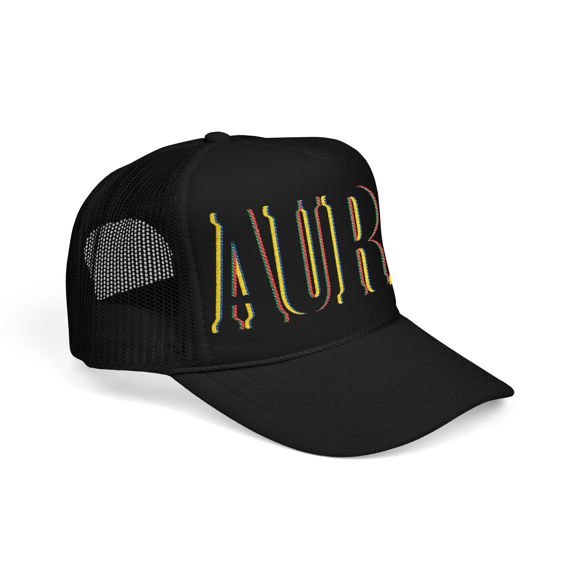 Embroidered 'LAURA' Red Foam Trucker Hat – Vintage Rainbow Stitch Mesh Cap